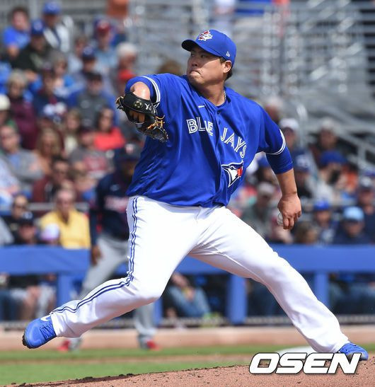 토론토 블루제이스 류현진이 17일(한국시간) 플로리다 더니든 바비 매틱 트레이.